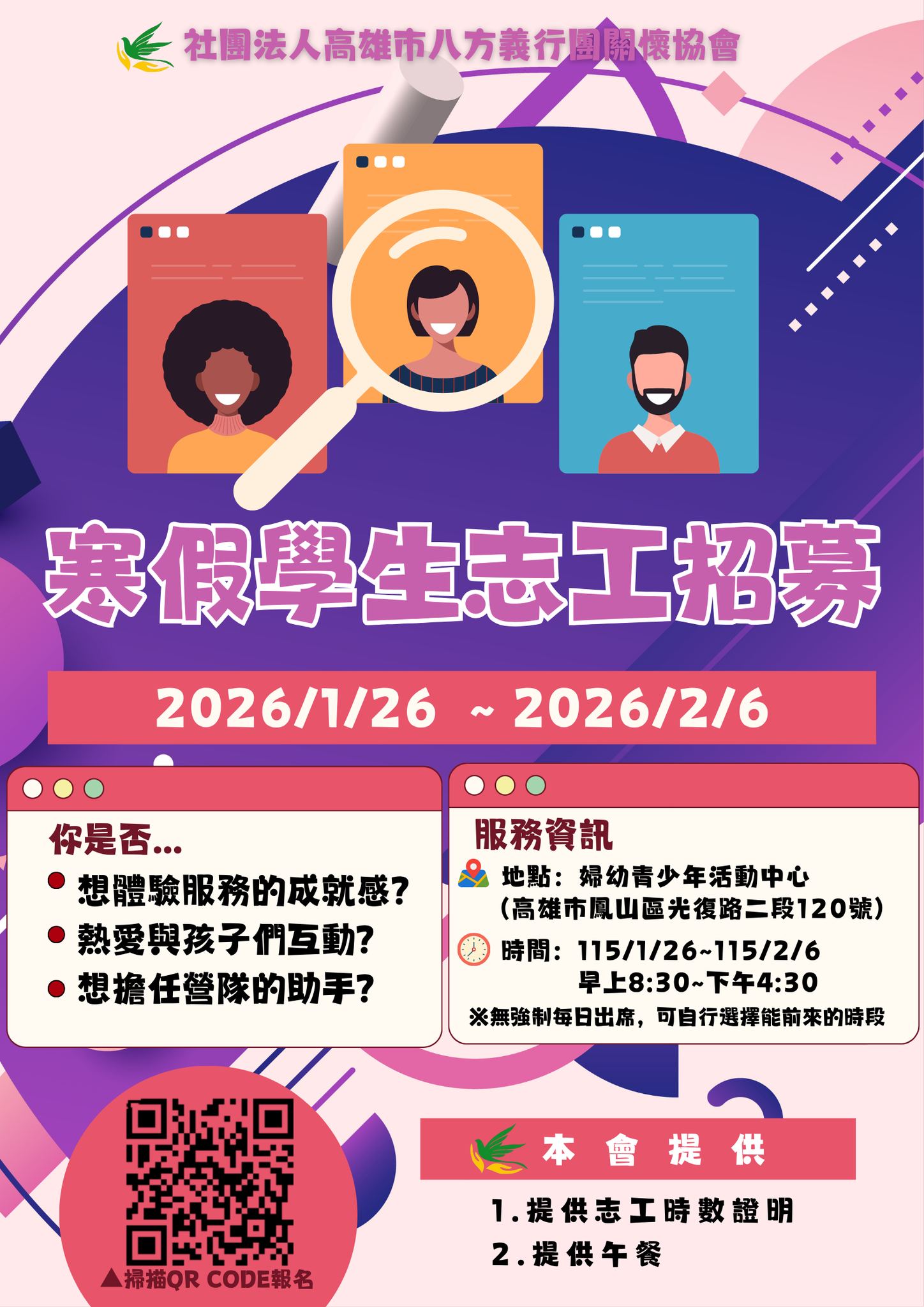 🎉 八方115寒假冬令營(短期)志工招募中! 🎉