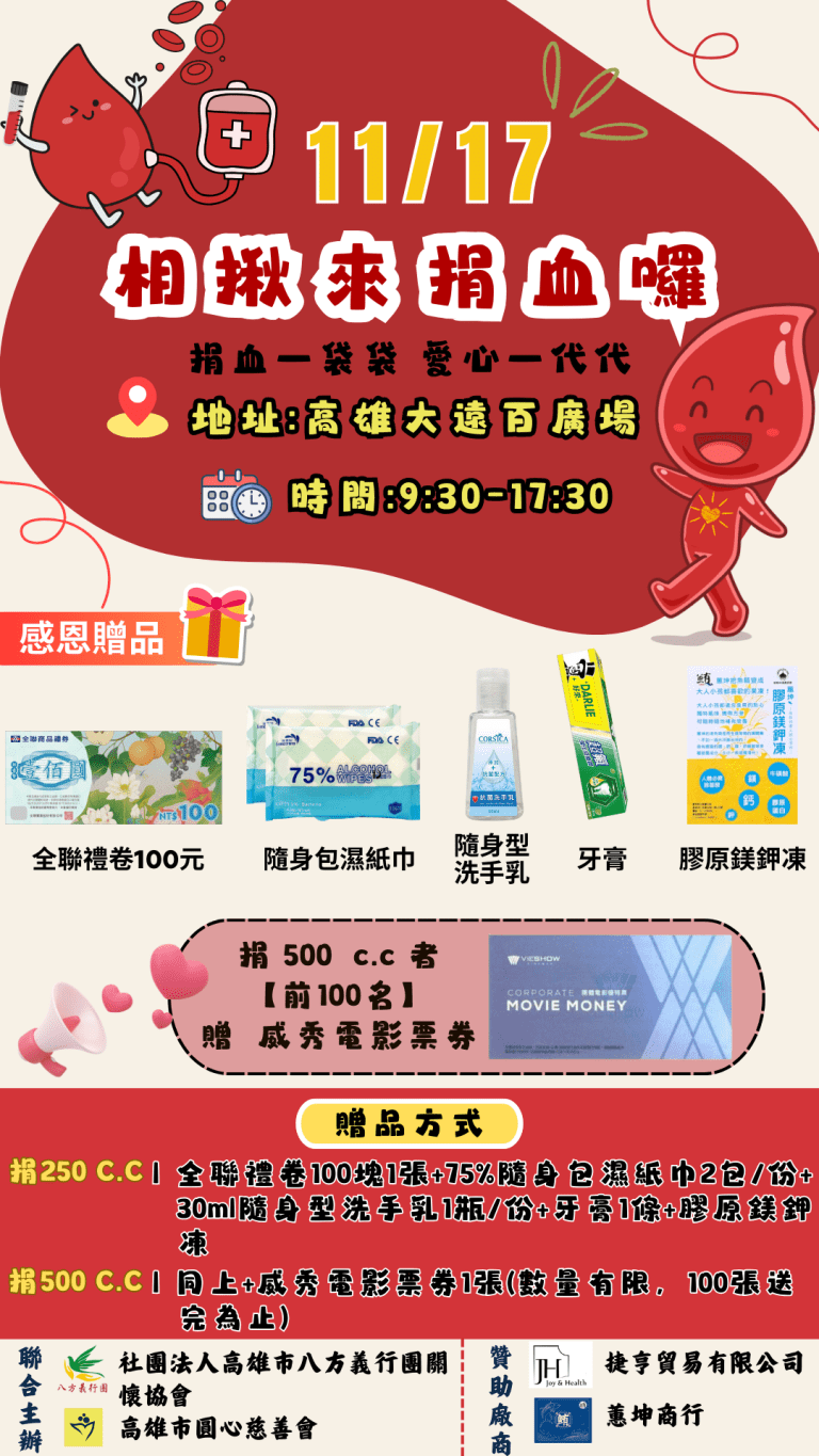 11月17日(星期日)高雄市大遠百廣場前-捐血…